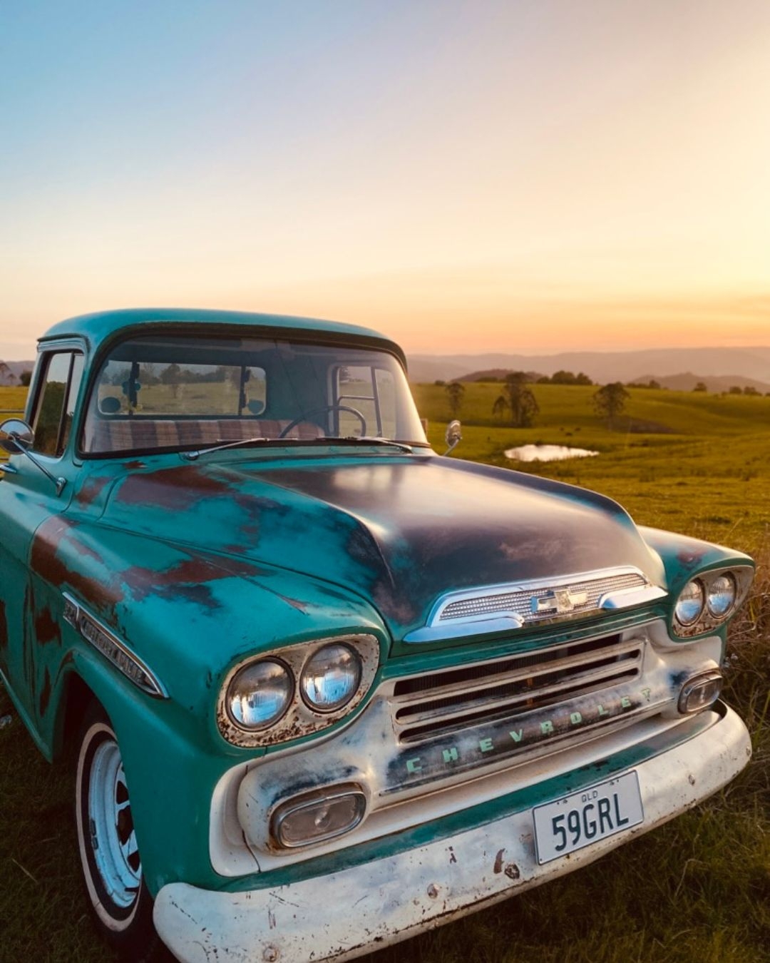 Sunshine Chevy is a 1959 Chevrolet Apache 3200 pickup truck, based on the Sunshine Coast, Queensland, Australia.