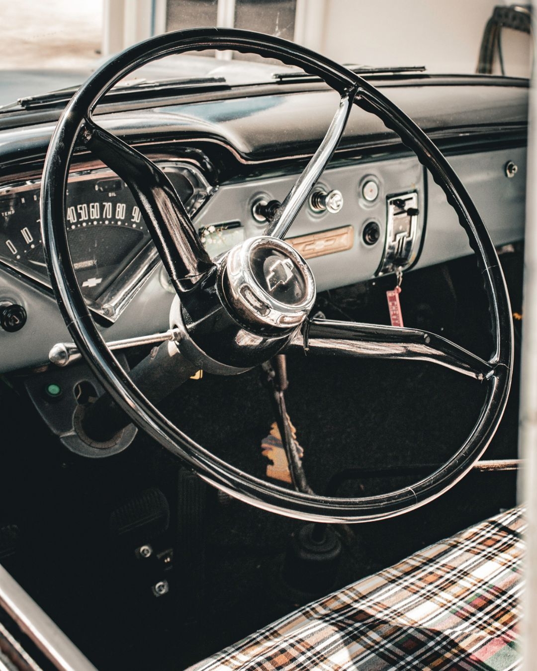 She’s left hand drive with a classic 4-speed manual stick on the floor—real "4-on-the-floor" style and cruises nicely with a classic Chevrolet Blue Flame straight 6 engine.