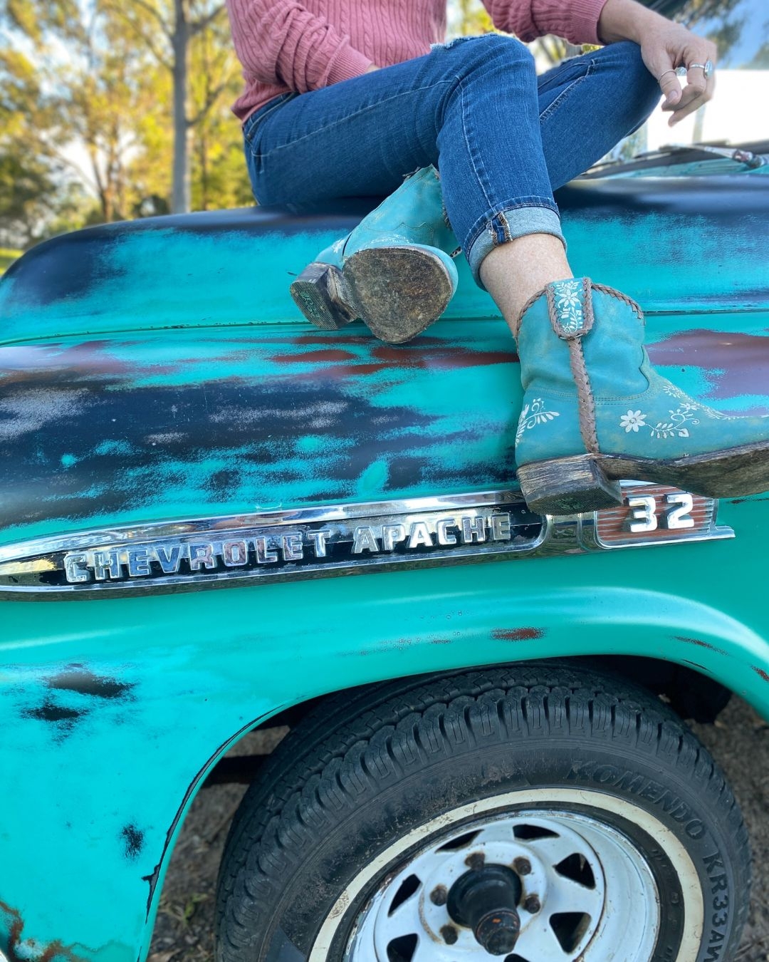 Real patina finish and a new timber bed gives her a classic old pick up truck look.