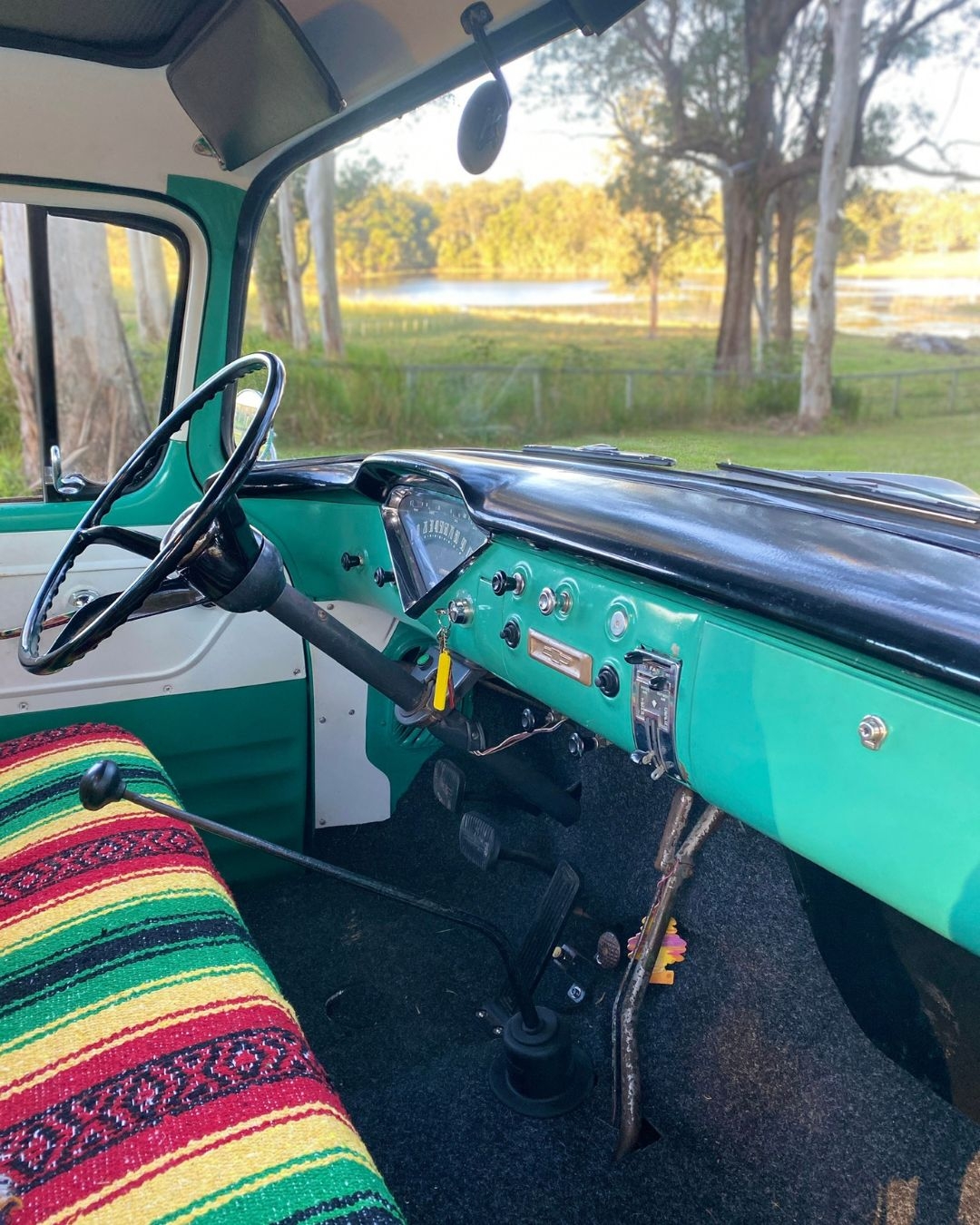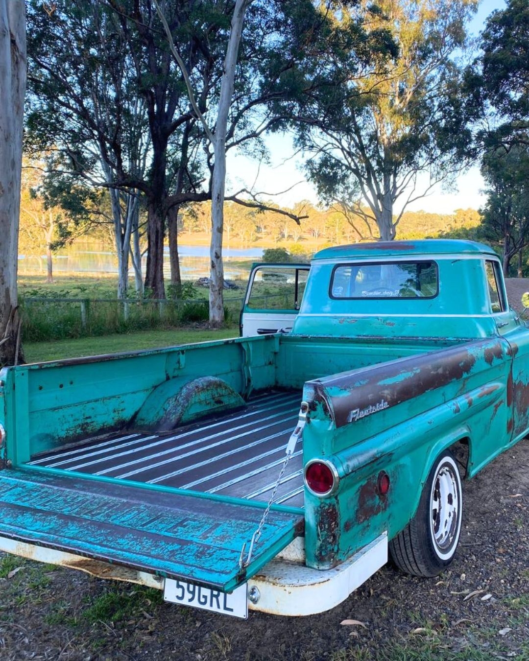 Sunshine Chevy is a 1959 Chevrolet Apache 3200 Fleetside, based on the Sunshine Coast, Queensland, Australia.